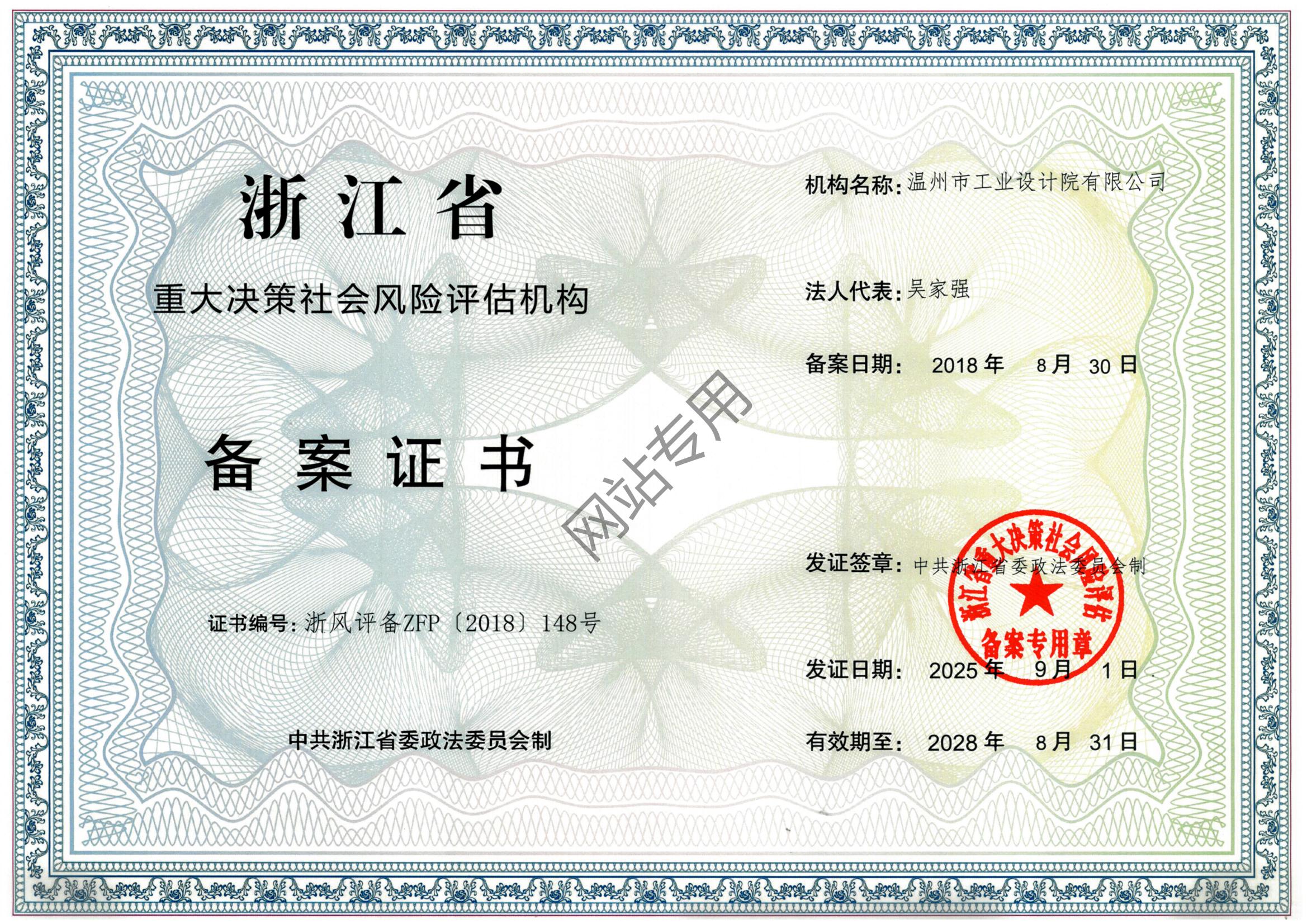 浙江省社會穩(wěn)定風(fēng)險評估機構(gòu)備案證書